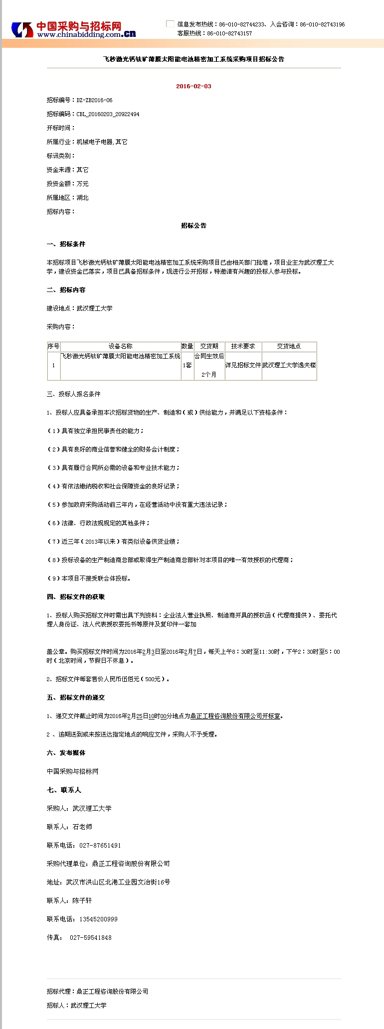 飛秒激光鈣鈦礦薄膜太陽能電池精密加工系統(tǒng)采購項目招標(biāo)公告