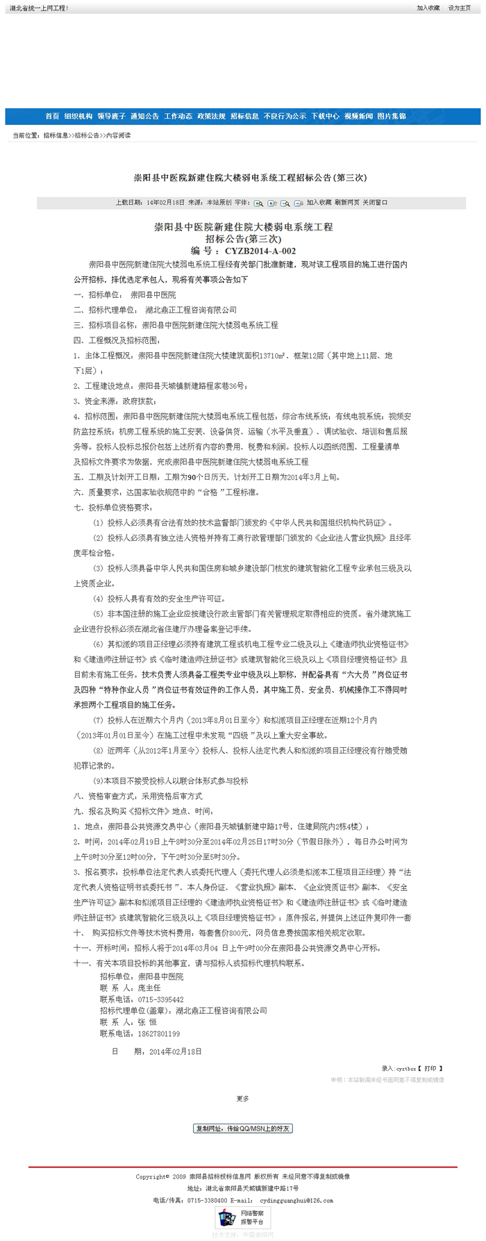 崇陽縣中醫(yī)院新建住院大樓弱電系統(tǒng)工程