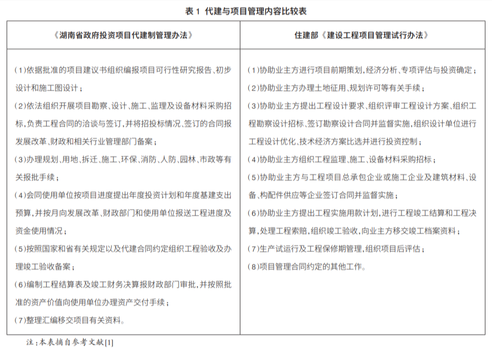 為貫徹2004年國務(wù)院發(fā)布的《關(guān)于投資體制改革的決定》精神,我國非經(jīng)營性政府投資項(xiàng)目已逐步形成了“政府專業(yè)機(jī)構(gòu)代建、政府專業(yè)代建公司代建和社會(huì)代建單位代建”三種主要模式。2007年,湖南省對社會(huì)代建項(xiàng)目作出明確規(guī)定,代建服務(wù)的業(yè)主包含政府職能部門和項(xiàng)目使用方,體現(xiàn)了政府職能部門(發(fā)改和財(cái)政等部門)對非經(jīng)營性政府投資項(xiàng)目的監(jiān)管,而且是可考核的工作。2007年住建部發(fā)布的《建設(shè)工程項(xiàng)目管理試行辦法》明確了為業(yè)主服務(wù)的項(xiàng)目管理內(nèi)容(表1),是以“協(xié)助”為主的服務(wù),這在當(dāng)時(shí)為推進(jìn)我國項(xiàng)目管理發(fā)展是必要的。目前,從效果考核的角度看,除了有部分是代理業(yè)主履行并可考核的工作外,大多的“協(xié)助”工作涉及到與業(yè)主的相互配合,服務(wù)效果難以考核。不能考核的工作要想得到業(yè)主和社會(huì)的認(rèn)可是困難的,這也是截至目前無法出臺全國性的工程項(xiàng)目管理服務(wù)酬金標(biāo)準(zhǔn)的原因之一。