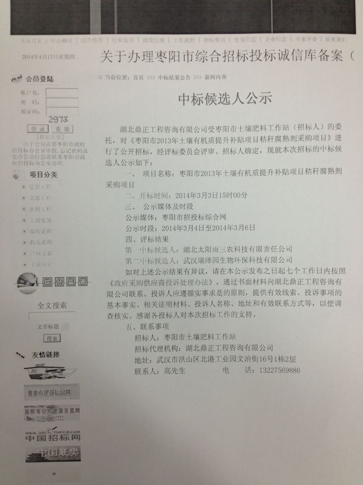 棗陽市2013年土壤有機(jī)質(zhì)提升補(bǔ)貼項目秸稈腐熟劑采購