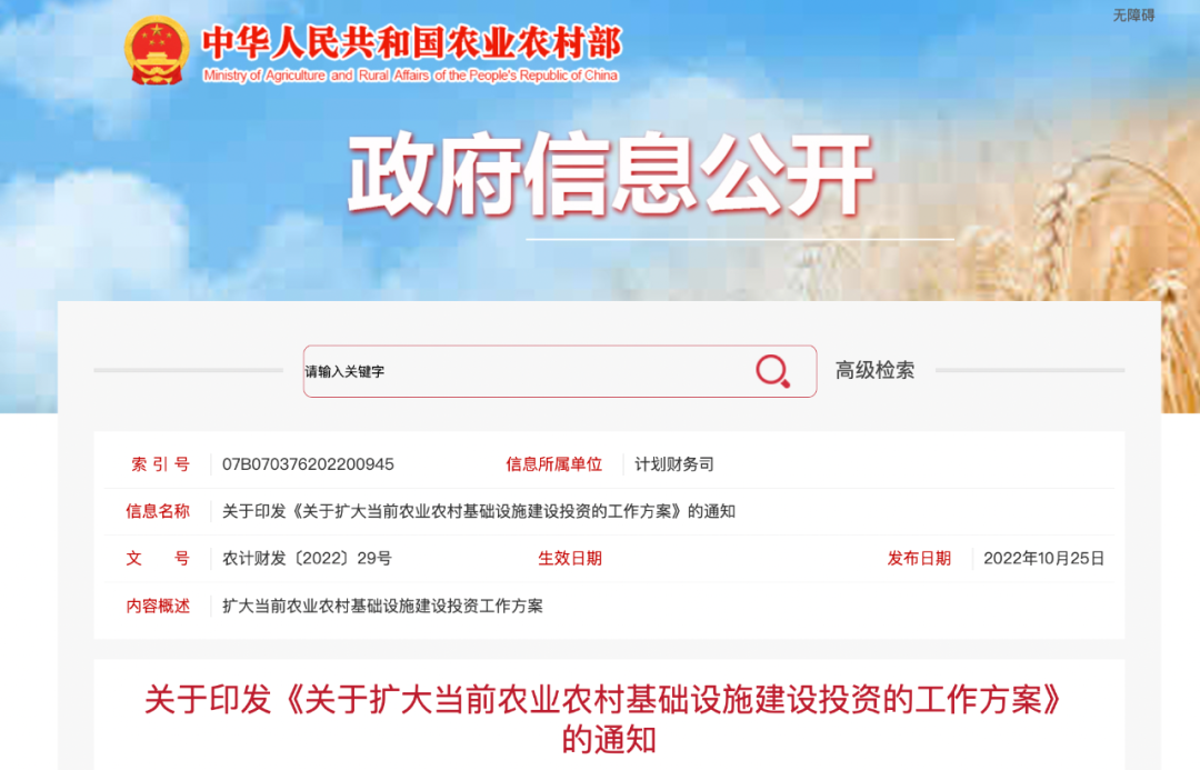 《關(guān)于擴(kuò)大當(dāng)前農(nóng)業(yè)農(nóng)村基礎(chǔ)設(shè)施建設(shè)投資的工作方案》全文發(fā)布!
