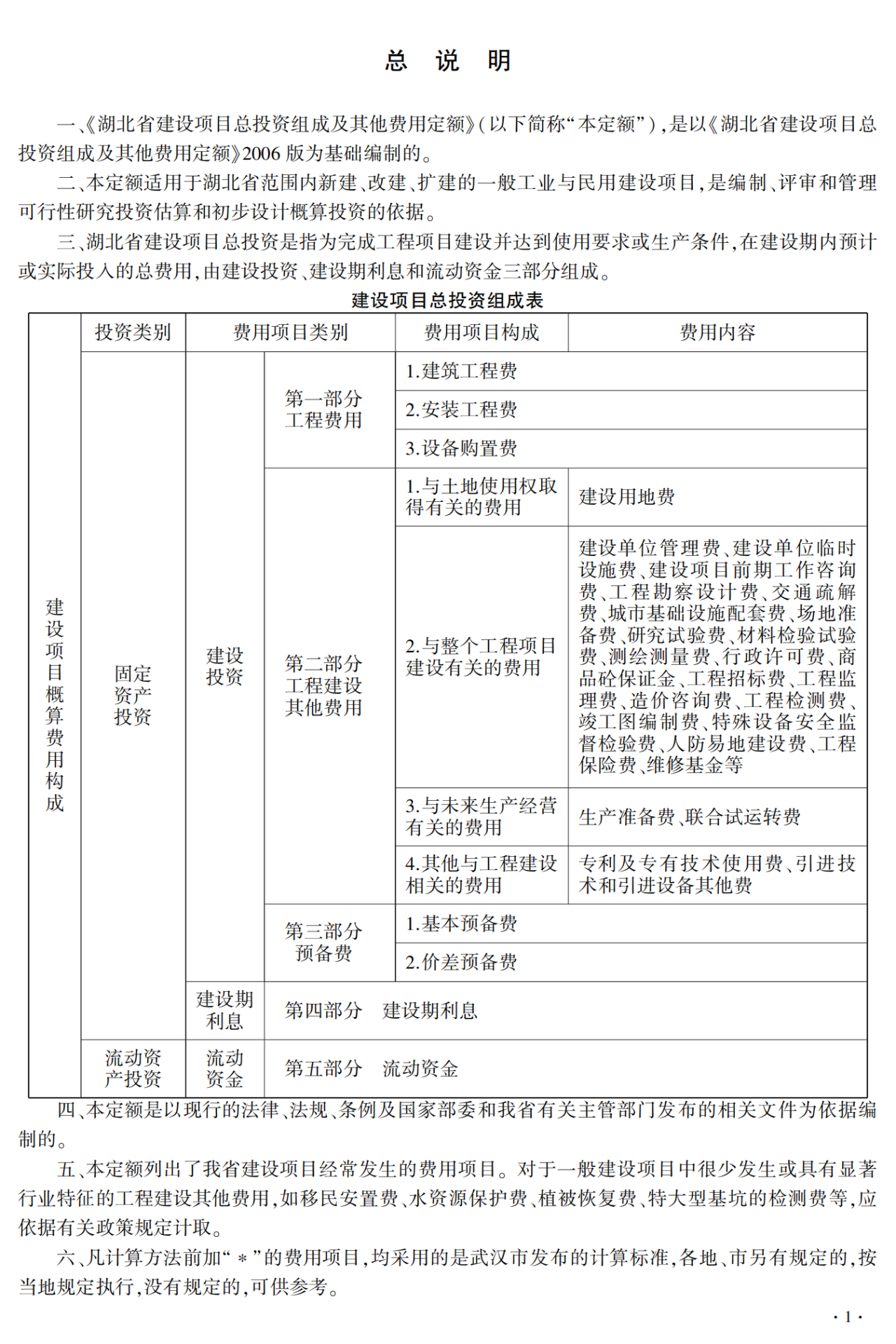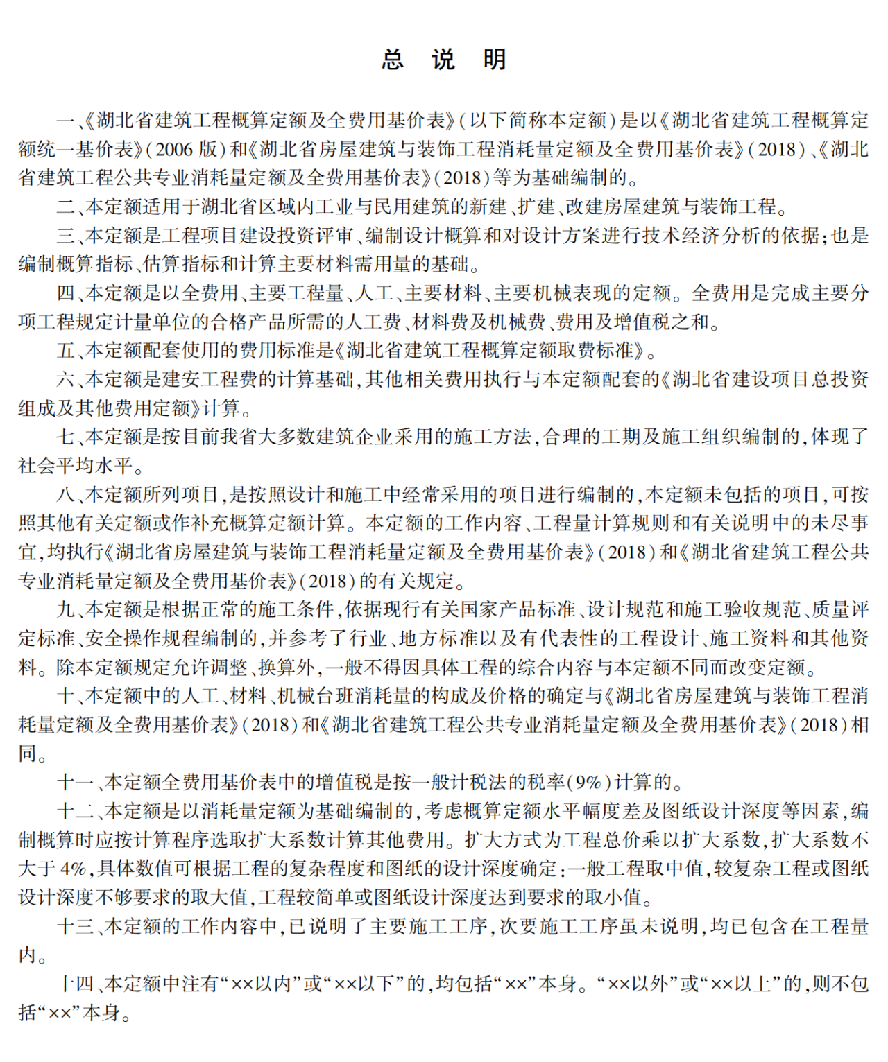 一、《湖北省建設(shè)工程概算定額及全費用基價表》是我省工程項目建設(shè)投資評審、編制設(shè)計概算和對設(shè)計方案進(jìn)行技術(shù)經(jīng)濟分析的依據(jù)。《湖北省建設(shè)項目總投資組成及其他費用定額》是編制、評審和管理可行性研究投資估算和初步設(shè)計概算投資的依據(jù)。