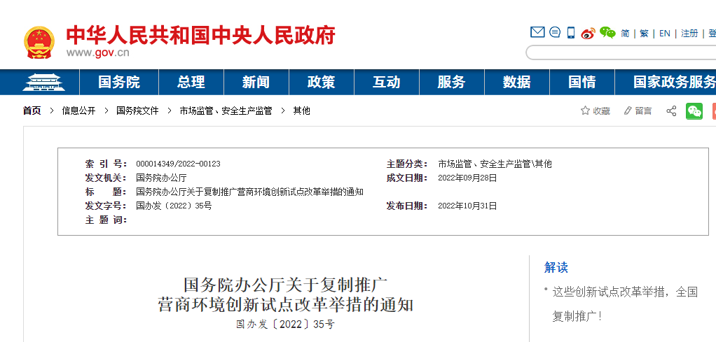 近日,國務(wù)院辦公廳發(fā)布關(guān)于復(fù)制推廣營商環(huán)境創(chuàng)新試點改革舉措的通知。一是進一步破除區(qū)域分割和地方保護等不合理限制,“清除招投標(biāo)和政府采購領(lǐng)域?qū)ν獾仄髽I(yè)設(shè)置的隱性門檻和壁壘”,二是健全更加開放透明、規(guī)范高效的市場主體準(zhǔn)入和退出機制,三是持續(xù)提升投資和建設(shè)便利度,“推進社會投資項目‘用地清單制’改革”、“分階段整合相關(guān)測繪測量事項”、“推行水電氣暖等市政接入工程涉及的行政審批在線并聯(lián)辦理”、“開展聯(lián)合驗收‘一口受理’”、“進一步優(yōu)化工程建設(shè)項目聯(lián)合驗收方式”、“簡化實行聯(lián)合驗收的工程建設(shè)項目竣工驗收備案手續(xù)”、“對已滿足使用功能的單位工程開展單獨竣工驗收”等。四是更好支持市場主體創(chuàng)新發(fā)展,五是持續(xù)提升跨境貿(mào)易便利化水平,六是維護公平競爭秩序,七是進一步加強和創(chuàng)新監(jiān)管,八是依法保護各類市場主體產(chǎn)權(quán)和合法權(quán)益,九是優(yōu)化經(jīng)常性涉企服務(wù)。