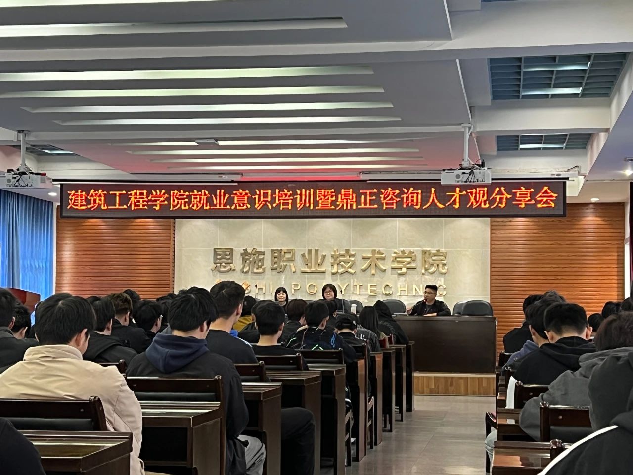 4月6日,鼎正恩施分公司總經(jīng)理彭萍受邀前往恩施職業(yè)技術學院建筑工程學院,為應屆畢業(yè)生帶來了《關于就業(yè)意識培訓暨鼎正咨詢?nèi)瞬庞^》分享會。