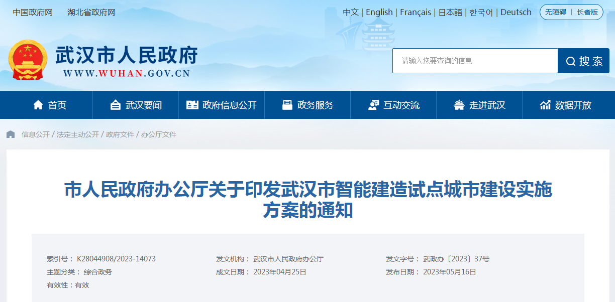 市人民政府辦公廳關(guān)于印發(fā)武漢市智能建造試點城市建設(shè)實施