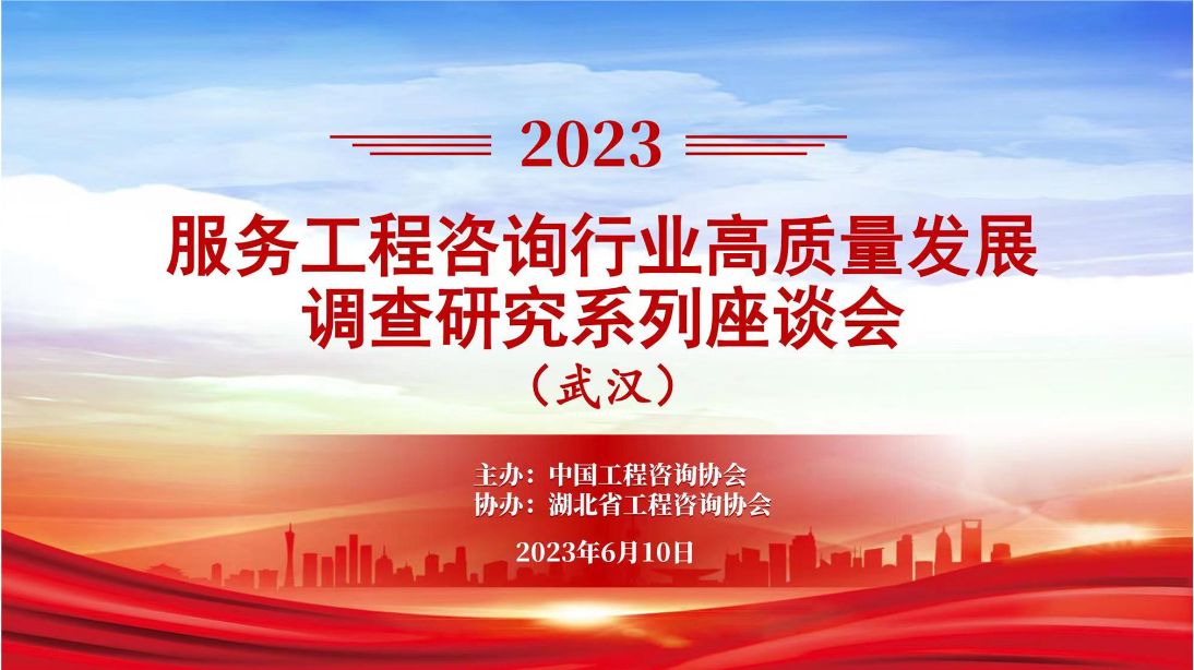 6月10日,我司王雁然董事長出席由中國工程咨詢協會(以下簡稱中咨協會)主辦,湖北省工程咨詢協會協辦“2023年服務工程咨詢行業(yè)高質量發(fā)展調查研究座談會”并做交流發(fā)言。會議由中咨協會會長肖鳳桐主持,來自湖北、湖南、河南三省13家工程咨詢企業(yè)代表近30人參加了此次座談會。
