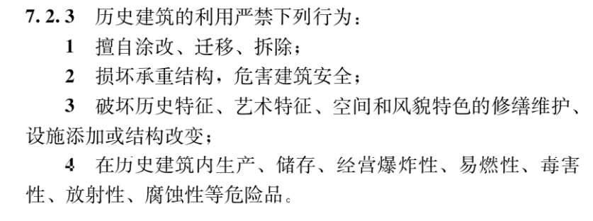 此外,明確提出歷史建筑的利用嚴(yán)禁4類行為。