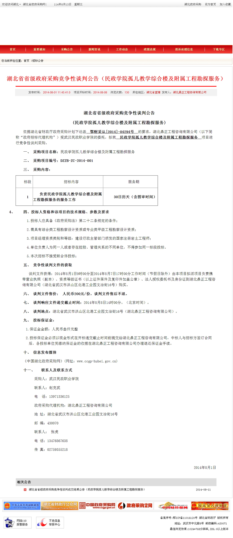 武漢民政職業(yè)學院孤兒教學綜合樓項目設計招標