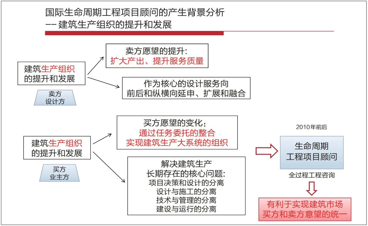 通過以上分析可以看出,國際生命周期工程項(xiàng)目顧問是因建筑市場(chǎng)上買方和賣方雙方的積極性而產(chǎn)生的,為建筑生產(chǎn)的組織形成一種新的模式。另外,關(guān)于國際生命周期工程項(xiàng)目顧問的特征和發(fā)展趨勢(shì)分析,也是可以供我國建筑業(yè)企業(yè)參考的。