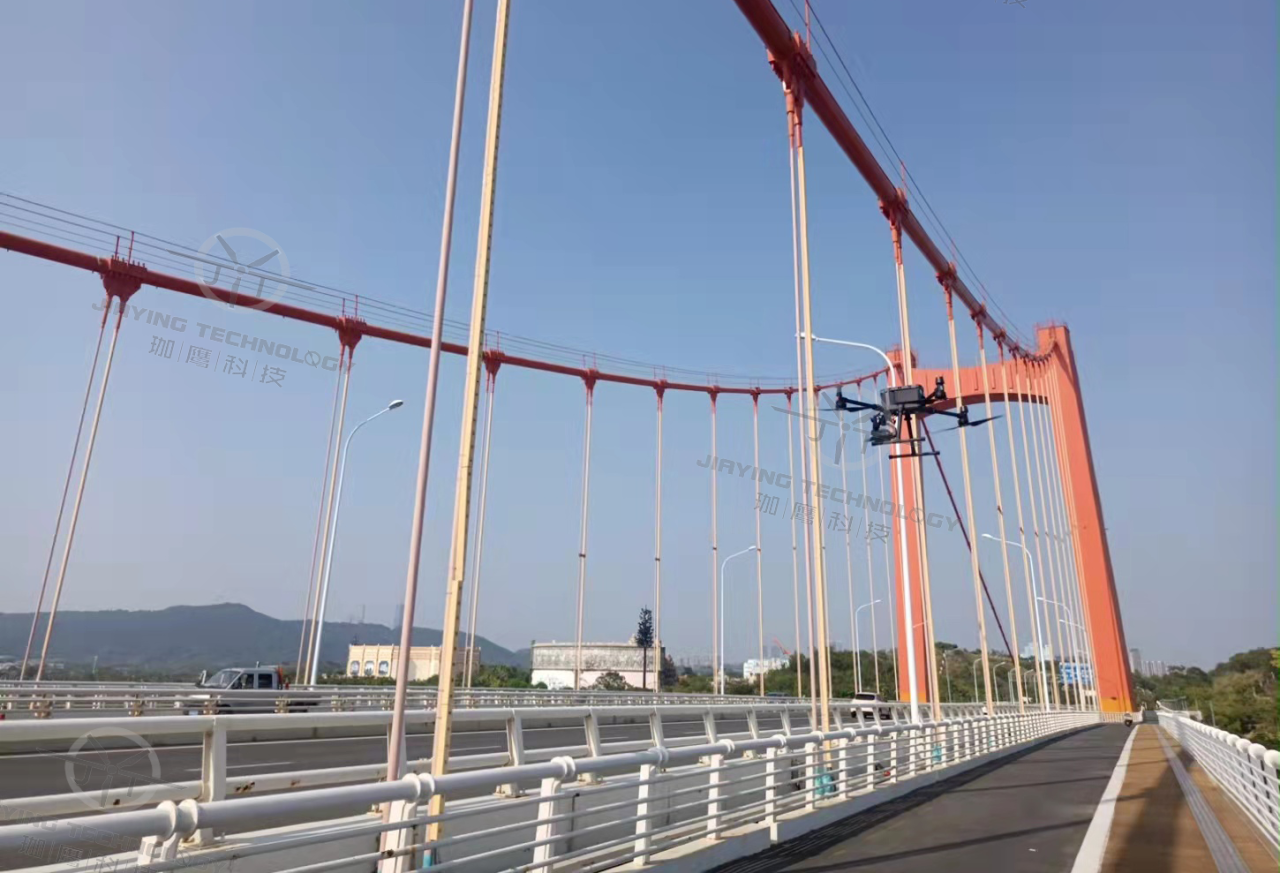 珈鷹根據(jù)這座斜拉索大橋所處的位置環(huán)境選擇了適合的無(wú)人機(jī)型號(hào)和載荷,進(jìn)行必要的調(diào)試與檢查。采用多源數(shù)據(jù)融合的方法,攻克了衛(wèi)星信號(hào)盲區(qū)這一難題,進(jìn)而可對(duì)橋梁底部、橋墩、支座、側(cè)面、橋塔、橋索等部位的外觀進(jìn)行全面高清圖像采集。