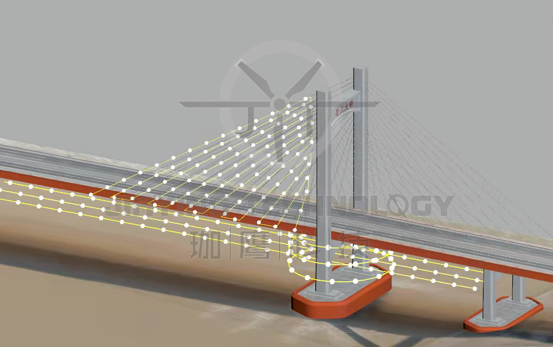 鰲江特大橋跨越鰲江口,主跨320米,主橋橋塔采用H型門(mén)式橋塔,索塔高為102.4米,相當(dāng)40層樓高,全橋共有96根斜拉索。就結(jié)構(gòu)特性而言,斜拉橋整體剛度遠(yuǎn)小于連續(xù)剛構(gòu)橋,因此通過(guò)智能檢測(cè)的手段收集病害信息至關(guān)重要。