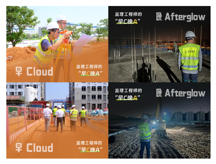 早:天還未亮,監(jiān)理工程師,已經(jīng)到達(dá)施工現(xiàn)場。迎著Cloud(藍(lán)天白云),開啟第一輪現(xiàn)場巡查,頭戴安全帽,手夾施工圖,一邊巡查一邊記錄。