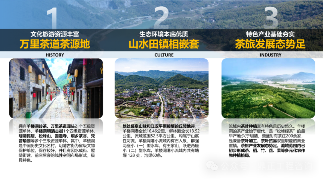 以本項(xiàng)目為例,羊樓洞港小流域地處幕阜山脈和江漢平原接壤的丘陵地帶,流域內(nèi)有羊樓洞港、柳林港兩條水系,整體呈現(xiàn)山、水、田、鎮(zhèn)相嵌套的格局;流域內(nèi)擁有明清時(shí)期國際茶葉貿(mào)易名鎮(zhèn)——羊樓洞古鎮(zhèn),這里是歐亞萬里茶道的源頭;流域內(nèi)茶葉種植特色歷史悠久,茶旅產(chǎn)業(yè)發(fā)展態(tài)勢(shì)正足,并且已初步形成茶、稻、竹、芍、果等多元化農(nóng)作物種植格局。