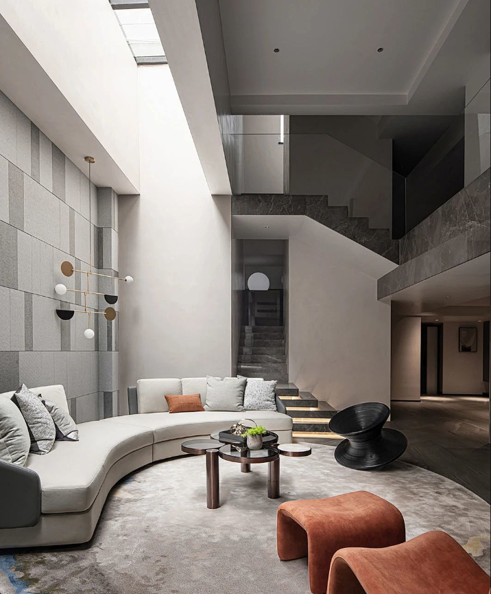 燈光對室內(nèi)色彩的影響,也是設(shè)計(jì)師需要考慮的重要因素。燈光的亮度、色溫、顯色度都直接影響著室內(nèi)色彩的最終視覺表現(xiàn)。暖光配暖色顯得溫馨;暖光配冷色或者冷光配暖色會(huì)形成一定的色彩對比產(chǎn)生視覺沖擊感;冷光配冷色會(huì)顯得幽靜深遠(yuǎn),具有未來科技感。