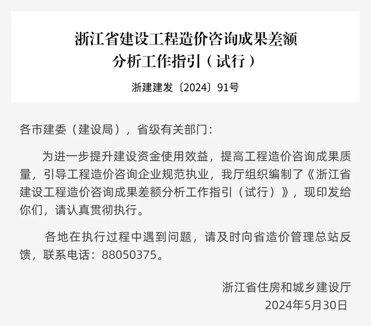 浙江省建設(shè)廳關(guān)于印發(fā)《浙江省建設(shè)工程造價(jià)咨詢成果差額分析工作指引(試行)》的通知