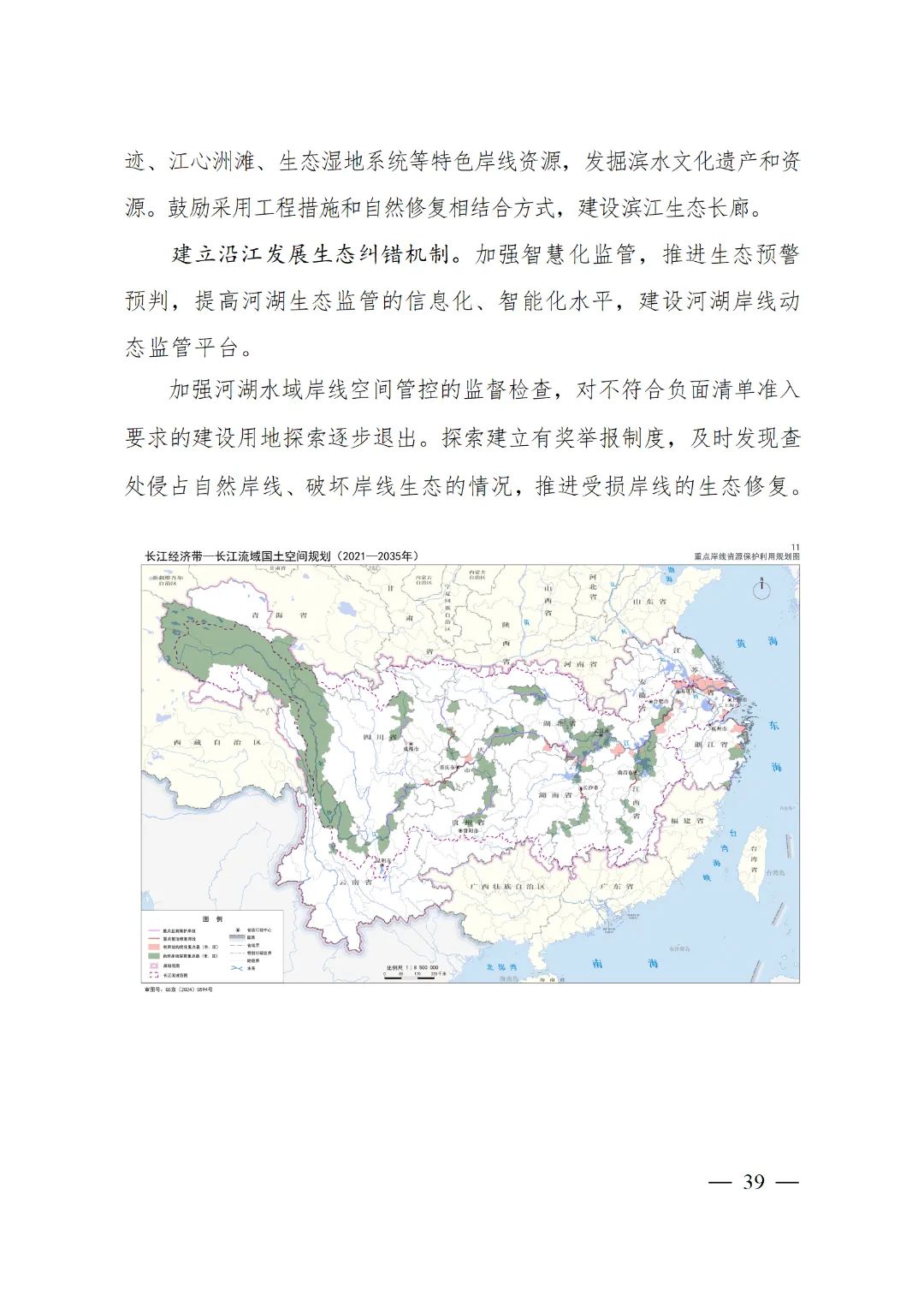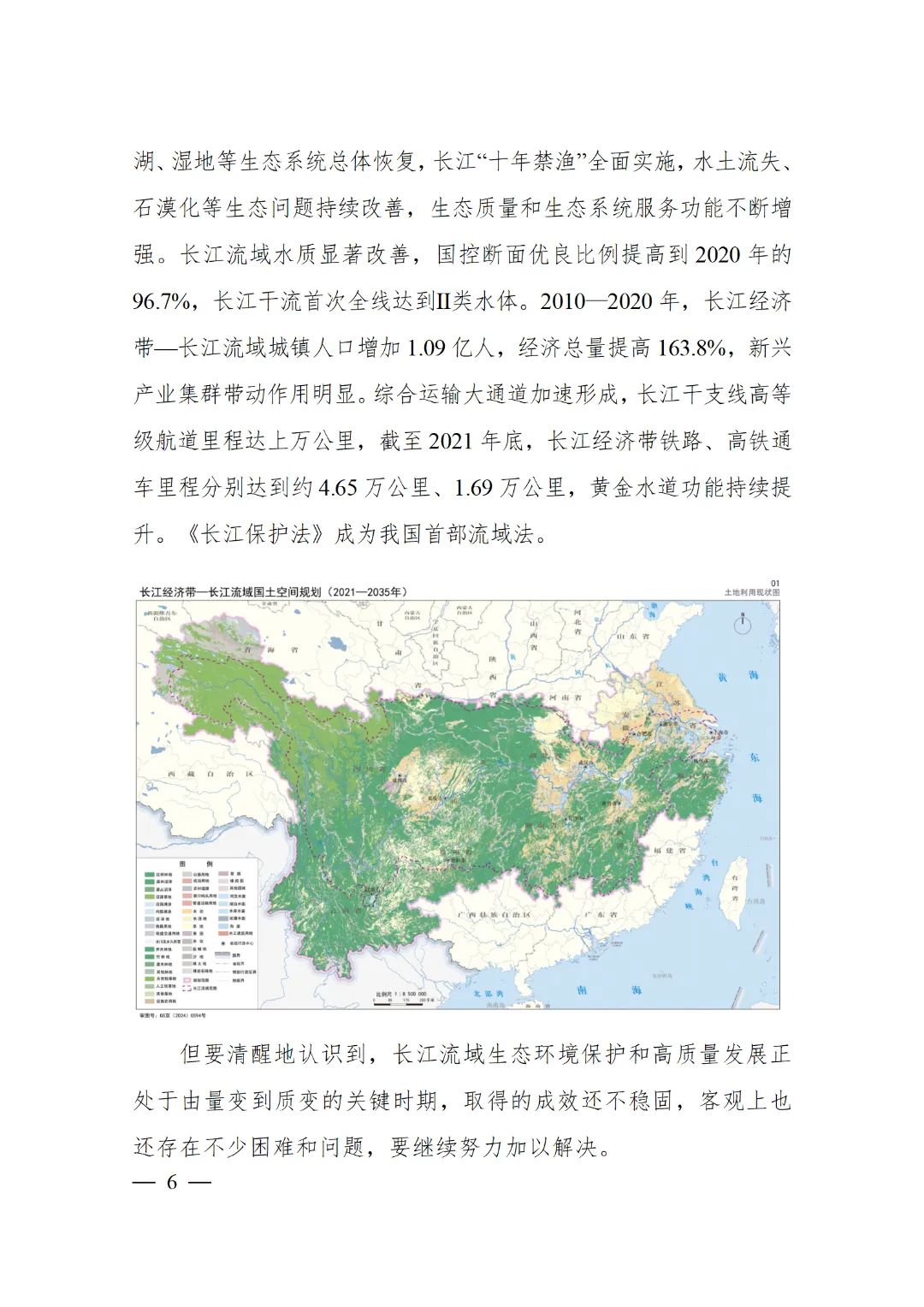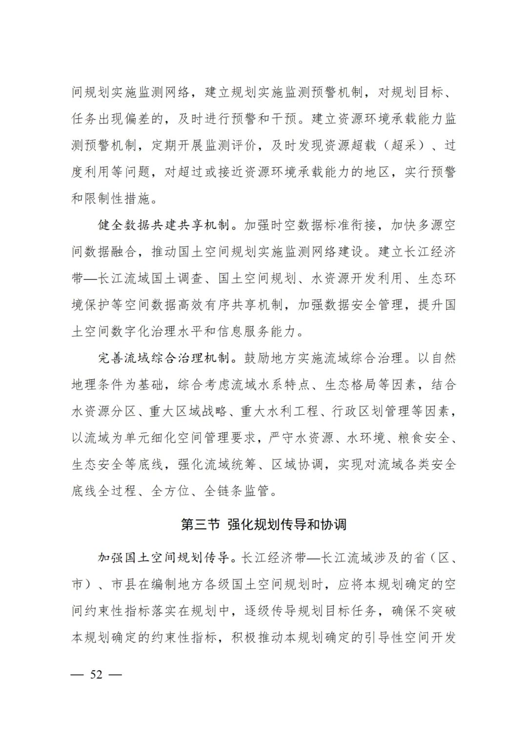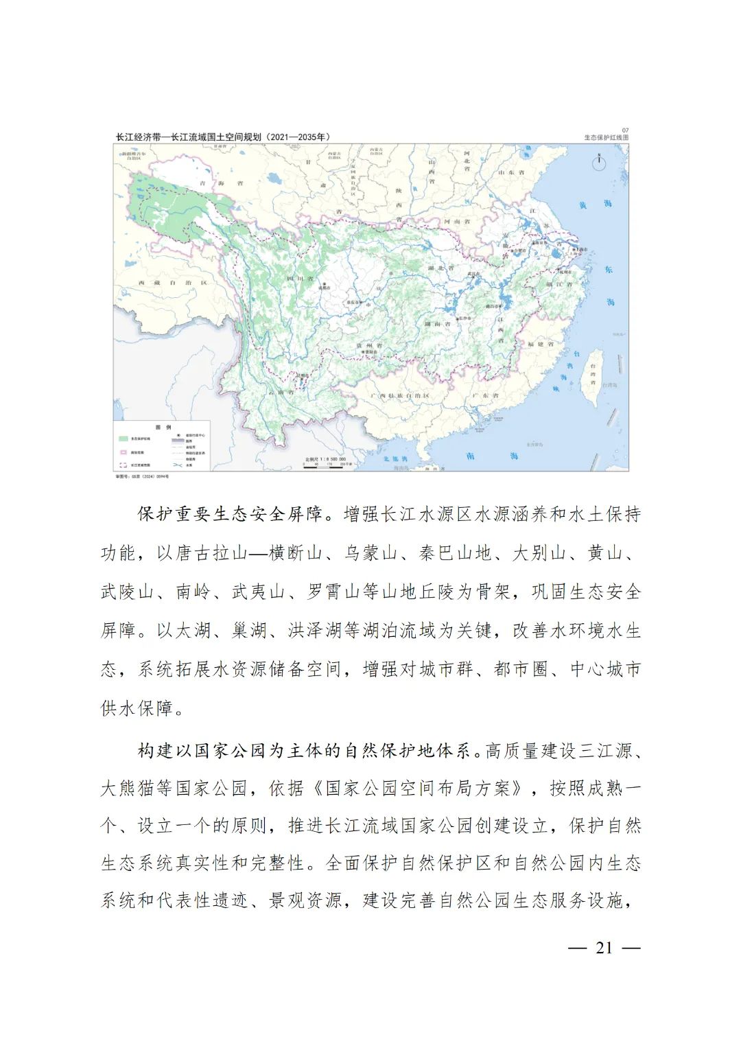 2024年2月9日,《長(zhǎng)江經(jīng)濟(jì)帶—長(zhǎng)江流域國(guó)土空間規(guī)劃(2021—2035年)》經(jīng)國(guó)務(wù)院批復(fù)同意。9月10日,自然資源部正式印發(fā)《長(zhǎng)江經(jīng)濟(jì)帶—長(zhǎng)江流域國(guó)土空間規(guī)劃(2021—2035年)》。規(guī)劃范圍包括長(zhǎng)江經(jīng)濟(jì)帶11個(gè)?。ㄊ校┤?/strong>,以及《長(zhǎng)江保護(hù)法》規(guī)定的長(zhǎng)江流域其他8?。▍^(qū)、市)的相關(guān)縣級(jí)行政區(qū)域,共計(jì)1173個(gè)縣級(jí)行政區(qū)域。規(guī)劃范圍包括陸域國(guó)土和內(nèi)水、領(lǐng)海。其中,陸域面積240萬平方公里。(后附規(guī)劃范圍詳細(xì)表格)規(guī)劃期限為2021年至2035年。