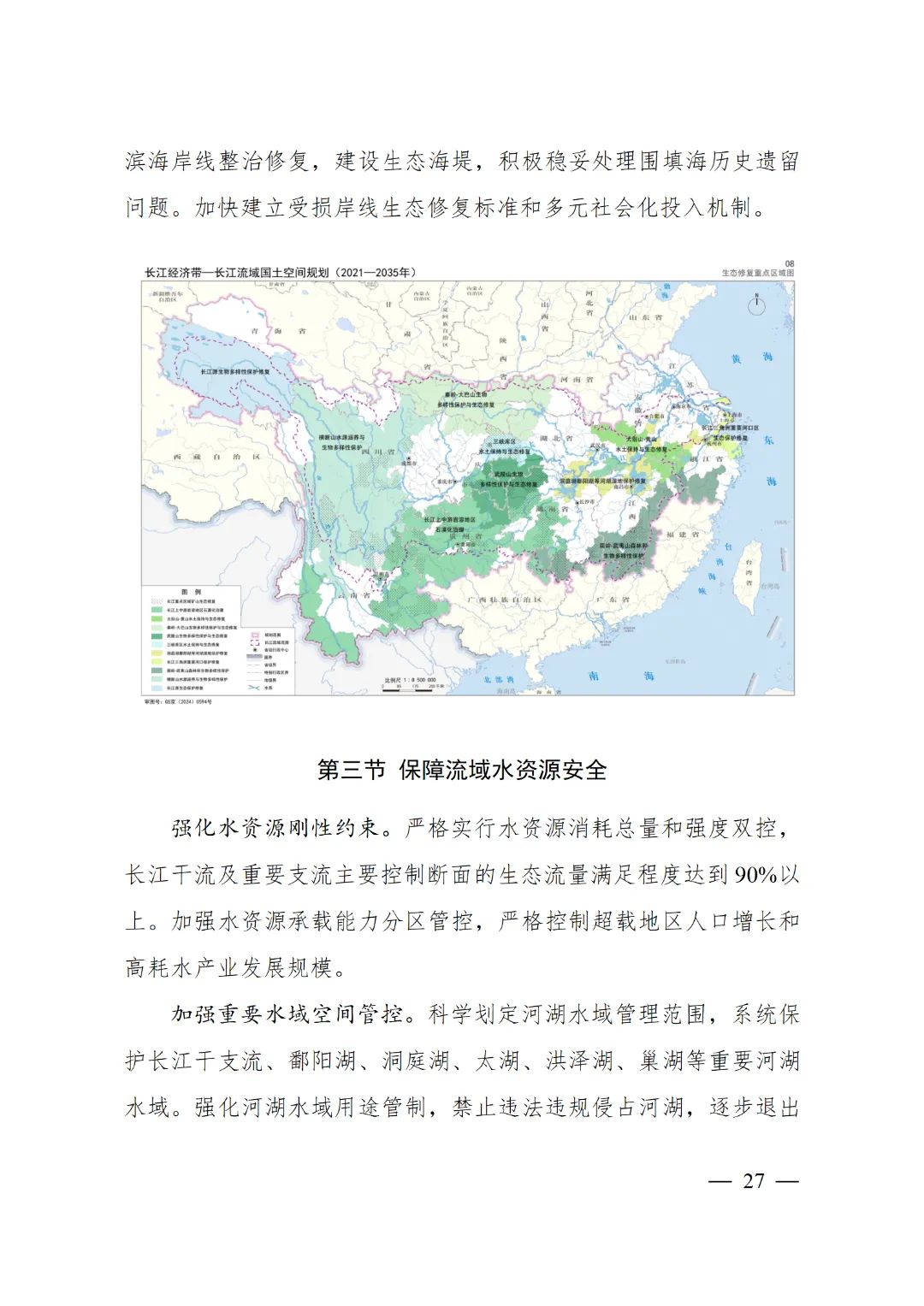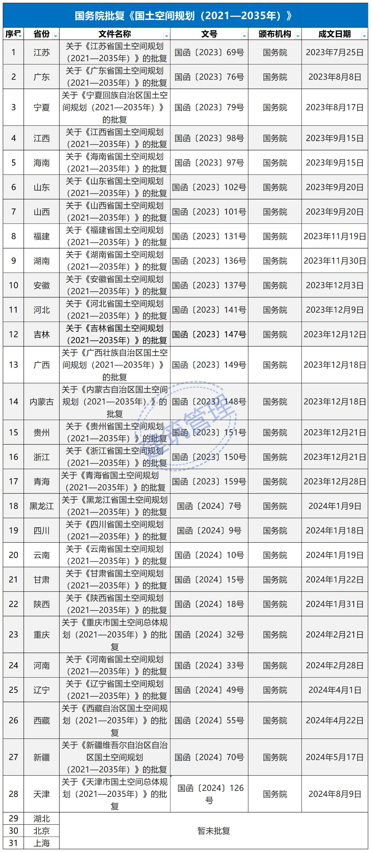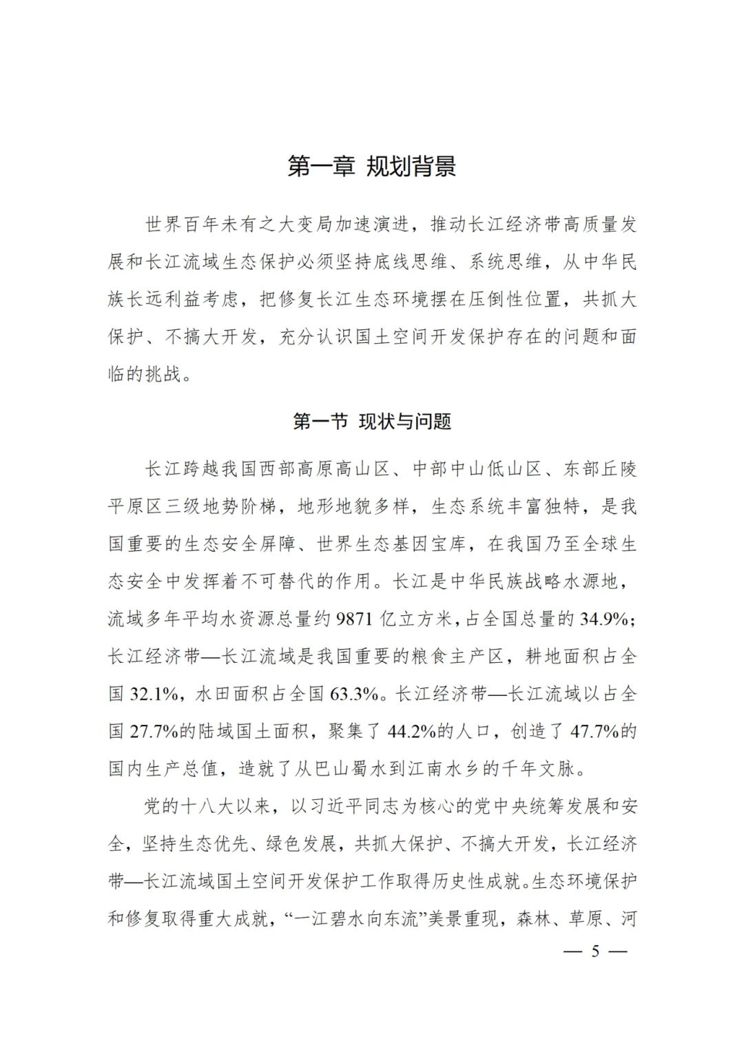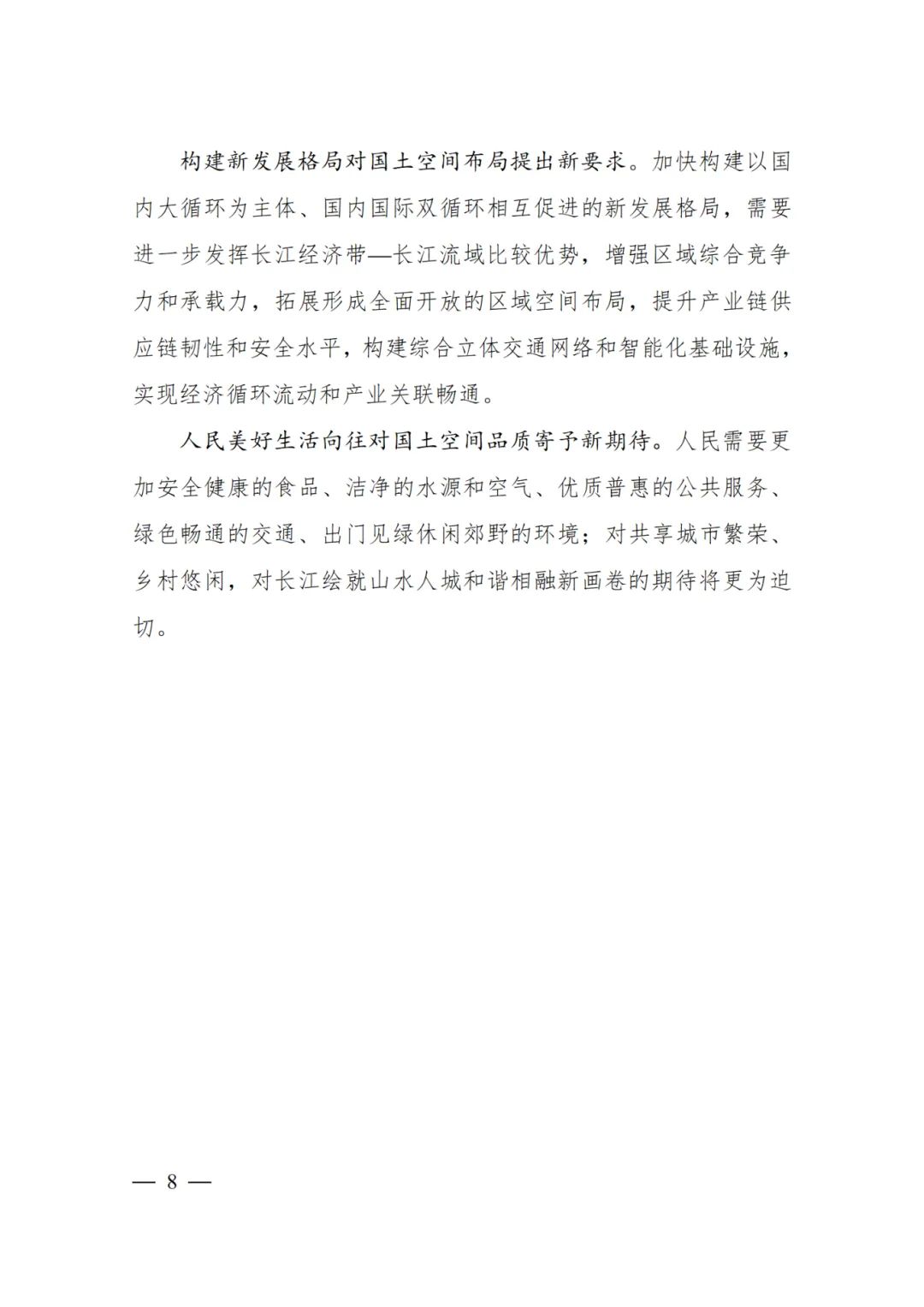 2024年2月9日,《長(zhǎng)江經(jīng)濟(jì)帶—長(zhǎng)江流域國(guó)土空間規(guī)劃(2021—2035年)》經(jīng)國(guó)務(wù)院批復(fù)同意。9月10日,自然資源部正式印發(fā)《長(zhǎng)江經(jīng)濟(jì)帶—長(zhǎng)江流域國(guó)土空間規(guī)劃(2021—2035年)》。規(guī)劃范圍包括長(zhǎng)江經(jīng)濟(jì)帶11個(gè)?。ㄊ校┤?/strong>,以及《長(zhǎng)江保護(hù)法》規(guī)定的長(zhǎng)江流域其他8?。▍^(qū)、市)的相關(guān)縣級(jí)行政區(qū)域,共計(jì)1173個(gè)縣級(jí)行政區(qū)域。規(guī)劃范圍包括陸域國(guó)土和內(nèi)水、領(lǐng)海。其中,陸域面積240萬平方公里。(后附規(guī)劃范圍詳細(xì)表格)規(guī)劃期限為2021年至2035年。