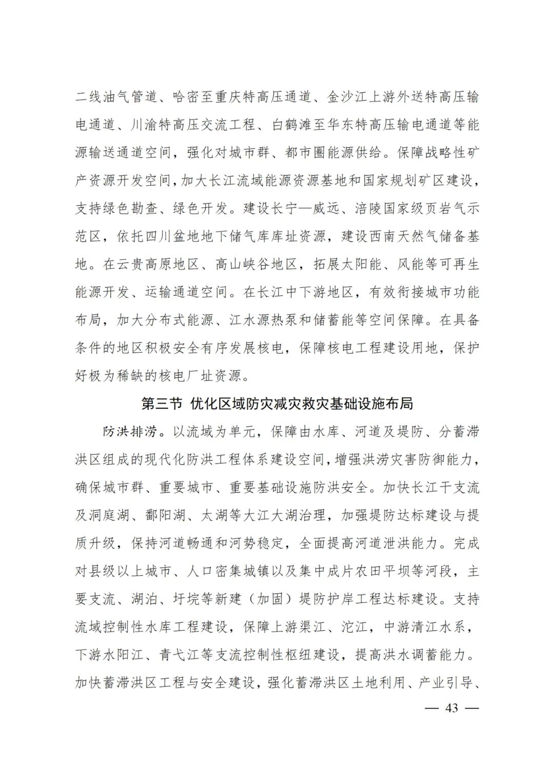 保障中緬油氣管道、川氣東送二線油氣管道、哈密至重慶特高壓通道、金沙江上游外送特高壓輸電通道、川渝特高壓交流工程、白鶴灘至華東特高壓輸電通道等能源輸送通道空間,強(qiáng)化對(duì)城市群、都市圈能源供給。
