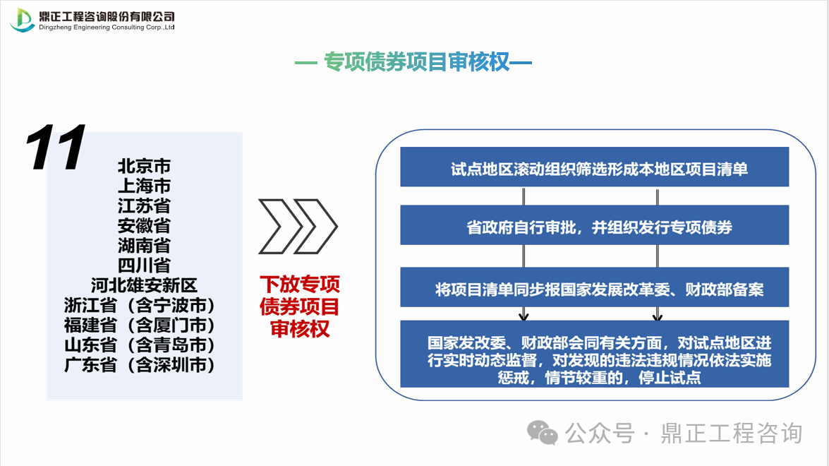 地方政府專項債券項目“自審自發(fā)”試點地區(qū)名單:北京市、上海市、江蘇省、浙江?。ê瑢幉ㄊ校?、安徽省、福建?。ê瑥B門市)、山東?。ê鄭u市)、湖南省、廣東?。ê钲谑校?、四川省、河北雄安新區(qū)等11個省市。