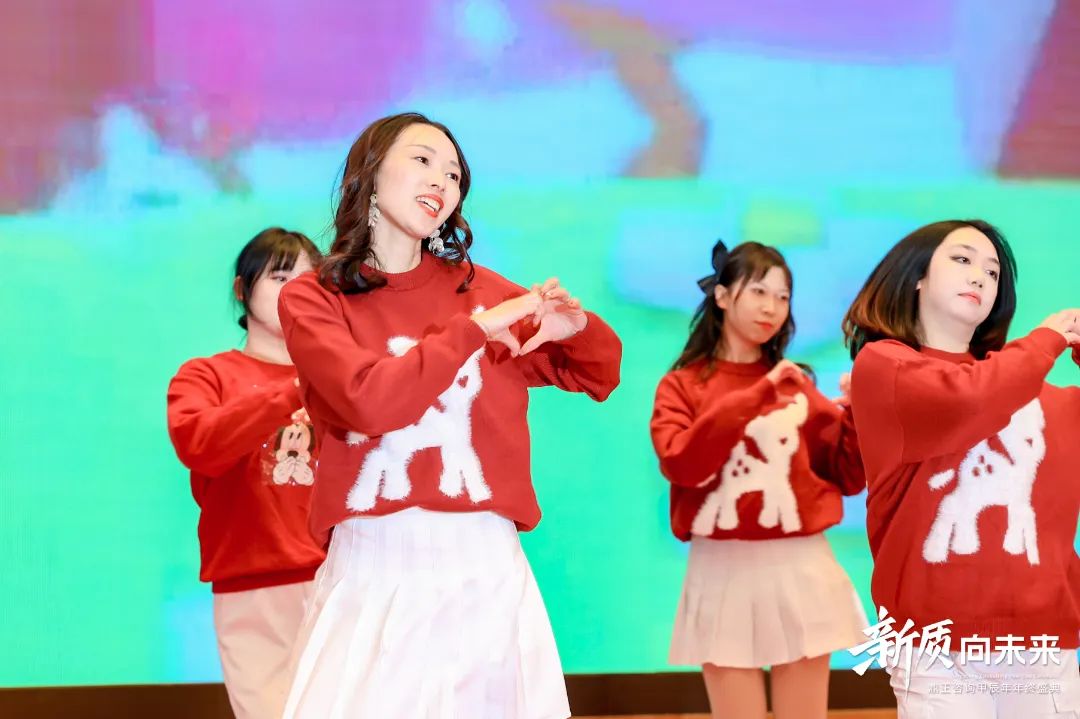 另一邊,由信息部、投標(biāo)部、城市公司發(fā)展部、市場(chǎng)部、財(cái)務(wù)部及造價(jià)咨詢(xún)事業(yè)部臨時(shí)組建的女團(tuán),帶來(lái)了洋溢著青春活力的舞蹈串燒《愛(ài)你》+《桃花朵朵開(kāi)》,展現(xiàn)了別樣的風(fēng)采。