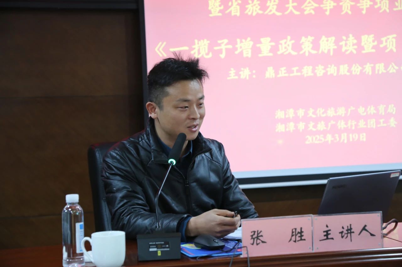 為搶抓增量政策窗口期,提升地方政府項(xiàng)目謀劃儲(chǔ)備質(zhì)量和項(xiàng)目謀劃水平,精準(zhǔn)擴(kuò)大有效投資。3月19日,鼎正湖南分公司前期咨詢部總經(jīng)理張勝應(yīng)湘潭市文旅廣體局之邀,為湘潭市文旅系統(tǒng)開展《一攬子增量政策解讀暨項(xiàng)目謀劃申報(bào)》的專題培訓(xùn)。